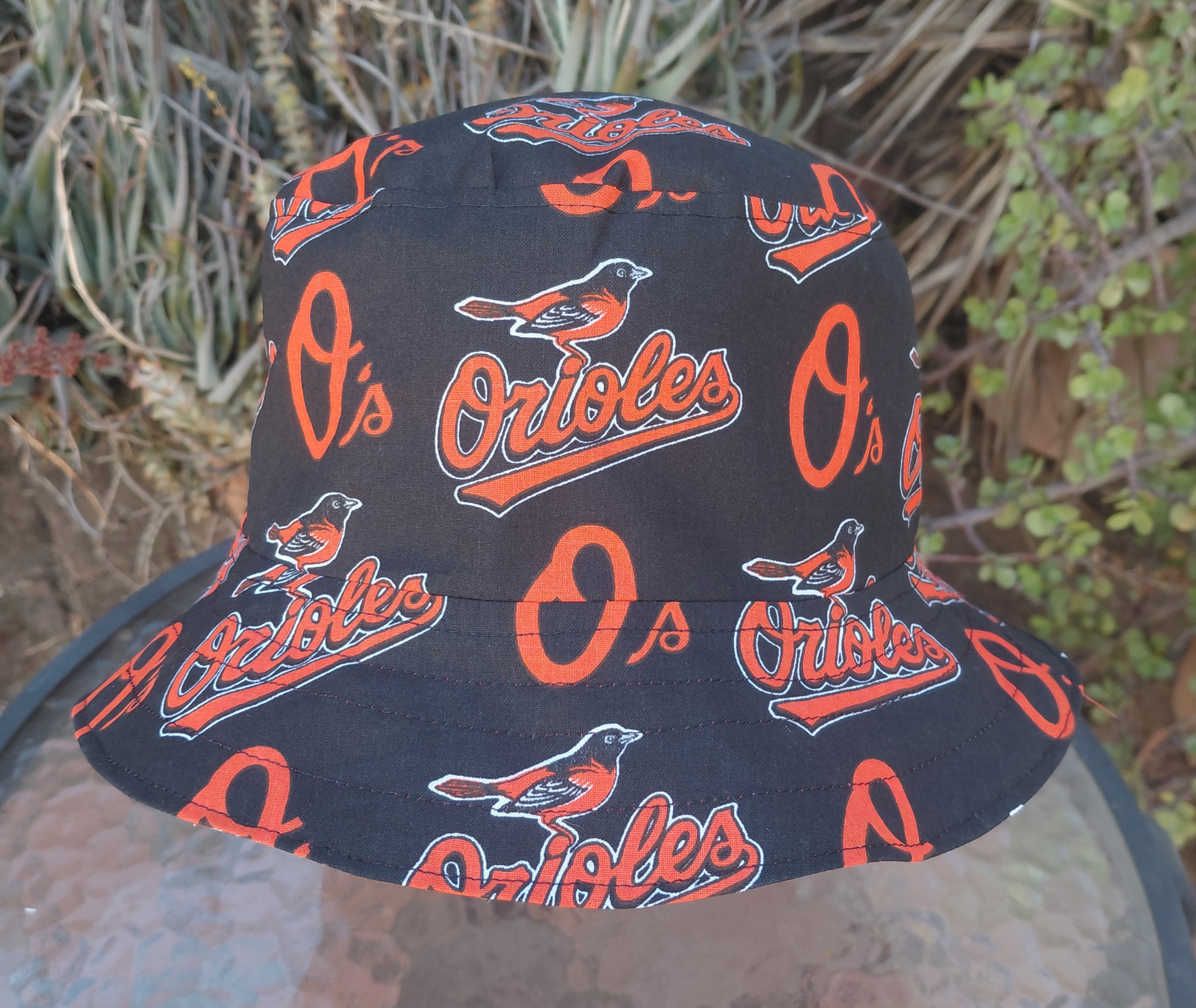 Baltimore Orioles / Ravens Bucket Hat, Reversible, Sizes up to 4XL, Handmade, with Ponytail Option