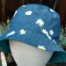 Denim Floral Bucket Hat with Daisies, Reversible, Size MEDIUM, floppy hat, sun hat, handmade