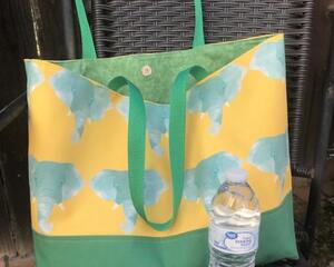 Elephant Watercolor Print Tote Bag, Canvas Bottom, Green & Ye...