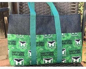 Hartford Whalers small denim tote bag, heavy duty, six exteri...
